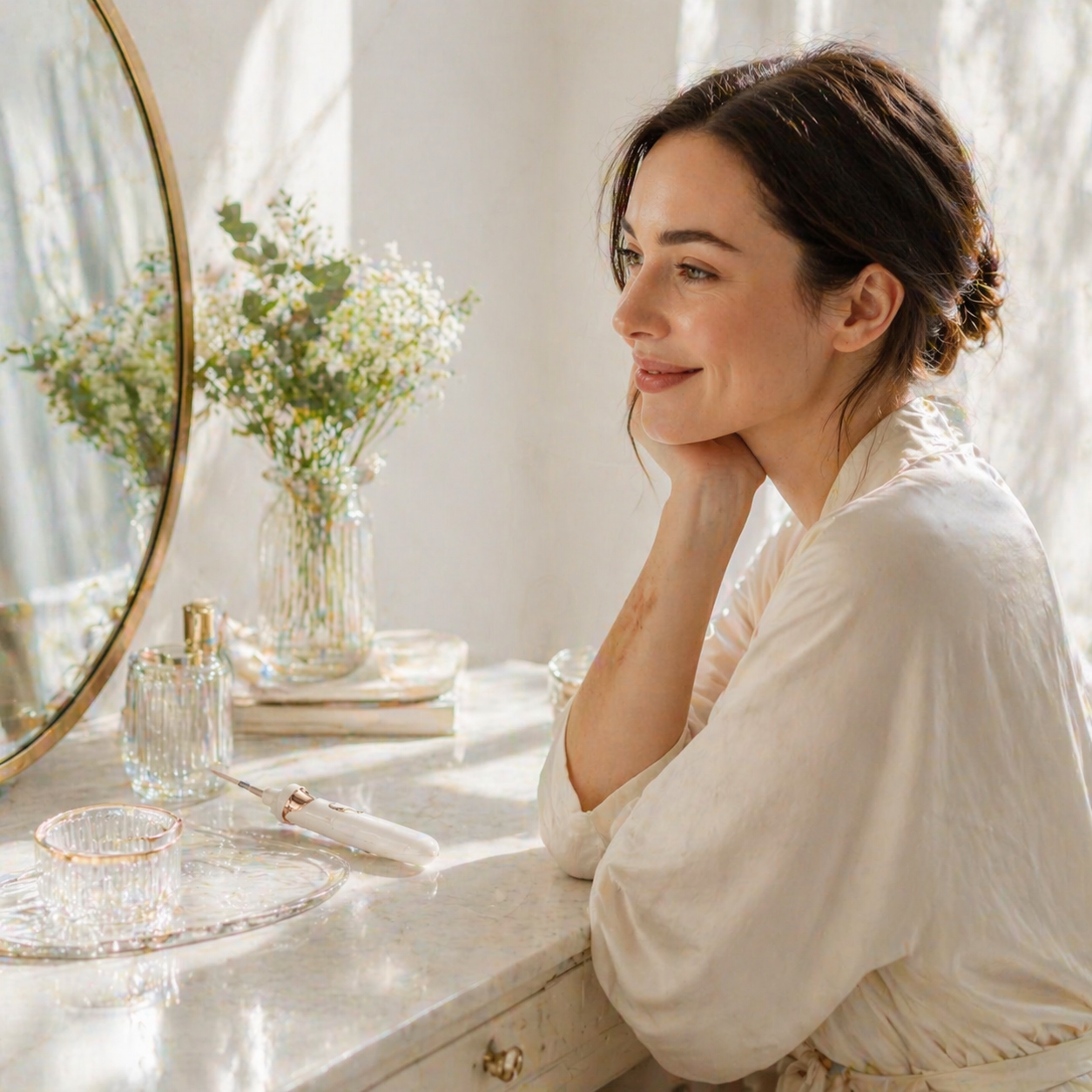 Remove the tip and detach the collection chamber. Rinse under warm water and allow to air dry. Store in a dry, clean space. Recharge via USB as needed. Ready for your next ritual.
