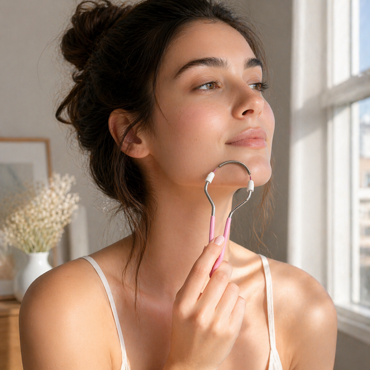 Start with clean, dry skin and avoid broken or actively irritated areas. This helps the spring grip fine hairs more effectively and keeps the routine more comfortable. - Shape The Tool